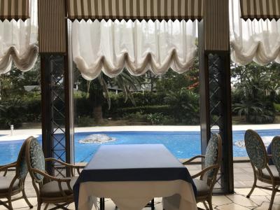 海浜幕張のホテルニューオータニ幕張の1階にあります。コロナ感染予防のため、ほかのレストランが営業制限をしている中、毎日利用できます。インルーム対応もしています。インルームでは、白いクロスのテーブルごと料理を運んできてくれ、アイスを頼んだら、氷で冷やす容器で。スープは、ポットで、運んでくれました。朝は、ビュッフェでした。ビニル手袋着用です。レストランの雰囲気は、プールが見え、おしゃれです。オムレツをその場で焼いてくれます。