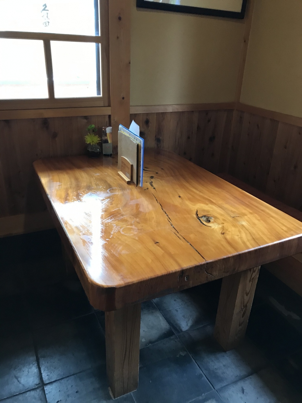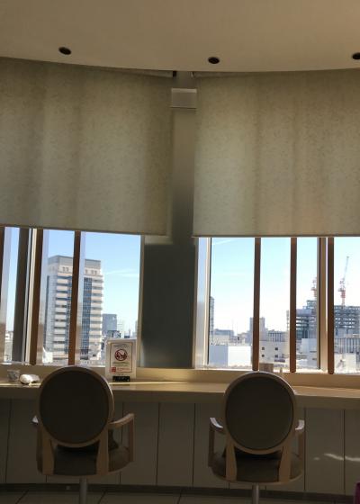 船堀タワーの1階の広場に面したところにあるレストランです。2人用のテーブルには、脇にアクリル板が、はめられ