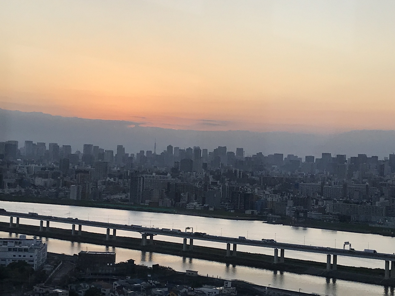 船堀駅近くにあります。地下1階には、映画館。大小ホールや様々な会議室。健康センターなどから、なっています。コロナ後、どのようになっているのか訪れて見ました。タワーの展望室へは、7階から、別のエレベーターに乗り換えて上がります。タワー行きのエレベーターの前で体温チェックがあり、アルコール消毒をします。もちろんマスク着用です。エレベーターは、スタッフが操作するので、それ以外に4人だけ、エレベーターに乗れます。展望室は、あまり広くありません。四方が見えます。夕陽が沈む時刻だったのでとてもきれいでした。皆さんソーシャルディスタンスを保ちながら、景色を見ていました。