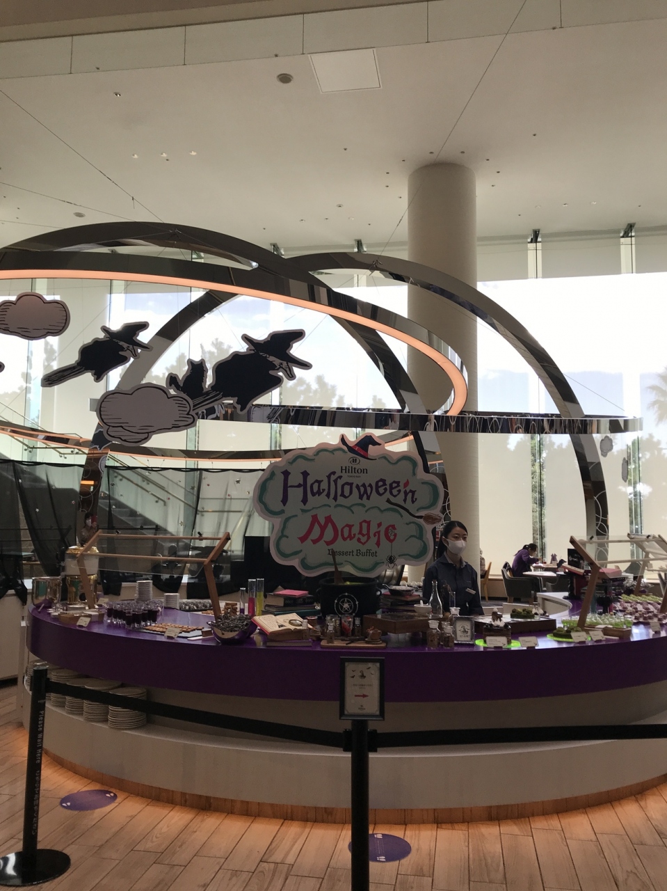 舞浜のヒルトン東京ベイにあります。ハロウィンスィーツビュッフェに行きました。ハロウィンのかわいいスィーツがたくさんありました。サンドイッチやカレーなどしょっぱい物もあるので、ランチとしてもいけます。ブュッフェ台へは、マスクとビニル手袋着用です。ビニル手袋は、ビュッフェ台を離れる時に捨てます。写真スポットもあってハロウィン気分を楽しめました。
