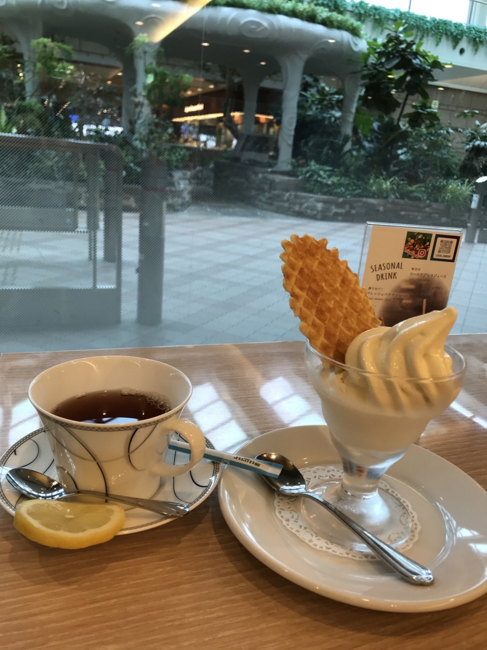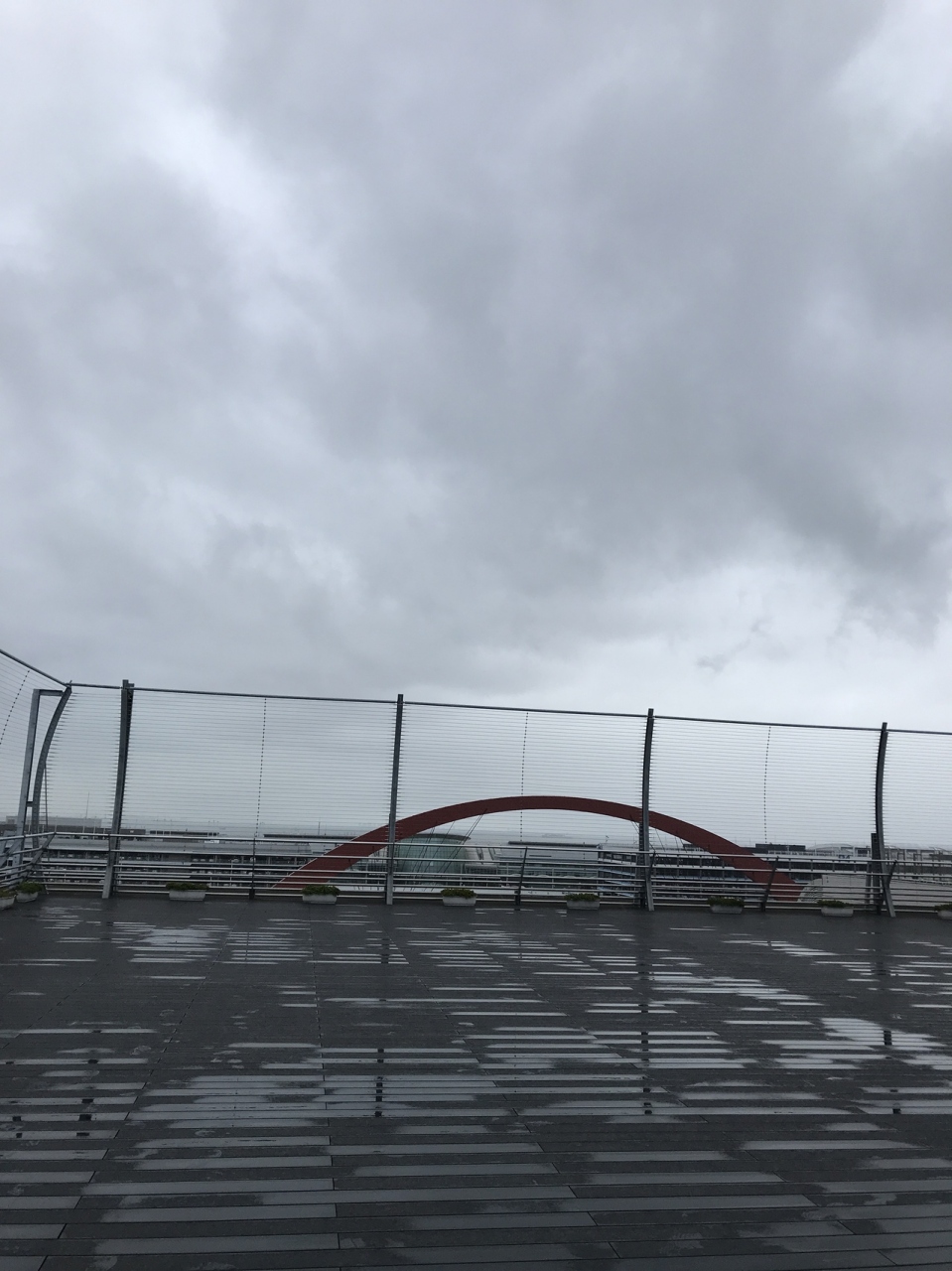 羽田空港のマーケットプレイスの6階に展望デッキがあります。そこからも飛行機はよく見えるのですが、もう1階外の階段を上がったところにガリバーのデッキがあります。屋外で屋根があるわけではないので、天気や気候の良い時は、最高の場所だと思います。が、訪れた日は、雨。傘を車に置いてきたので、落ち着いてみることができずに、早々に引き上げました。