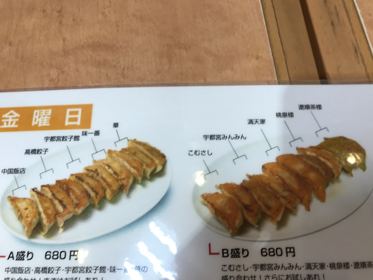 宇都宮の街中ドンキーの地下にあります。餃子屋さんのフードコートのような感じで好きなお店で買ったものを食べられます。みんみん、めんめん、さつきなどが店を連ねる常設店と、日替わりでいろいろな店舗の餃子が食べられる日替わり店舗があり、餃子屋さんがたくさんある宇都宮で、それぞれの店舗に行かなくても気軽に食べられます。訪れた時は、常設のみんみんがお休みで、日替わりの方でとりあえず、いろいろなお店の盛合わせを食べてから、常設店に行って、さつきの餃子を食べました。コロナ対策がされ、向かい合わせになるところのは、パネルがはめられており、蜜にならないように座席に案内されました。