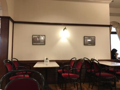 日本橋三越の2階にあるカフェです。店内は、赤いソファが並ぶ落ち着いた雰囲気。名前の通りヨーロッパのカフェのよう。ハプスブルク家のピンバッチやザッハトルテがあって、ここは、ウィーンかな?おいしそうなチョコレートドリンクやパフェ、ランチもあります。