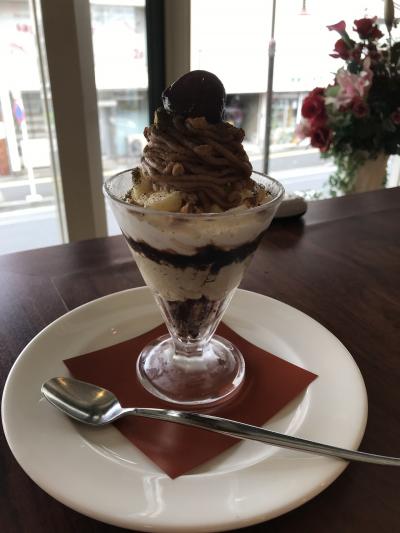 JR松戸駅のダイエーの近くにあります。1階は、駐車場と駐輪場で、2階がお店になっています。テーブル席のほかソファ席がいくつもあり、広いです。ソファ席の間には、パーティションがありました。季節のデザートは、秋らしい栗とほうじ茶パフェ。栗とほうじ茶の味が似合って美味しかったです。