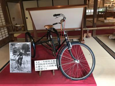 大正天皇のご静養地として作られた本邸。(戦争で焼けてしまい、今は、歴史民族資料館が建っています。)昭和天皇が御幼少の時のお住まいとして作られた西附属邸(現在公開されています。)学問所として建てられた東附属邸(貸室利用)などの建物があり、それ以外に広い庭園部があります。1969年まで、実際に使用されていたそうです。雨だったので、庭園だけでなく室内の見学もしました。昔の懐かしいお写真や調度品などがたくさんありました。当時の暮らしがうかがわれて、興味深かったです。庭園も広く、草木あり海アリで素敵なところだったのですが、いかんせん雨。残念でした。