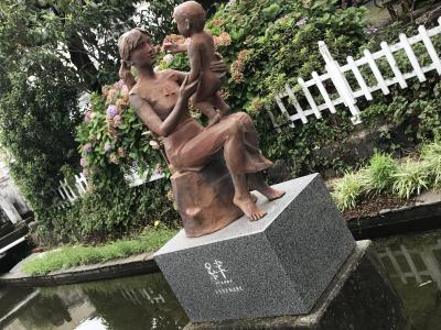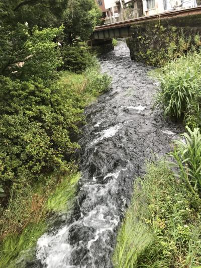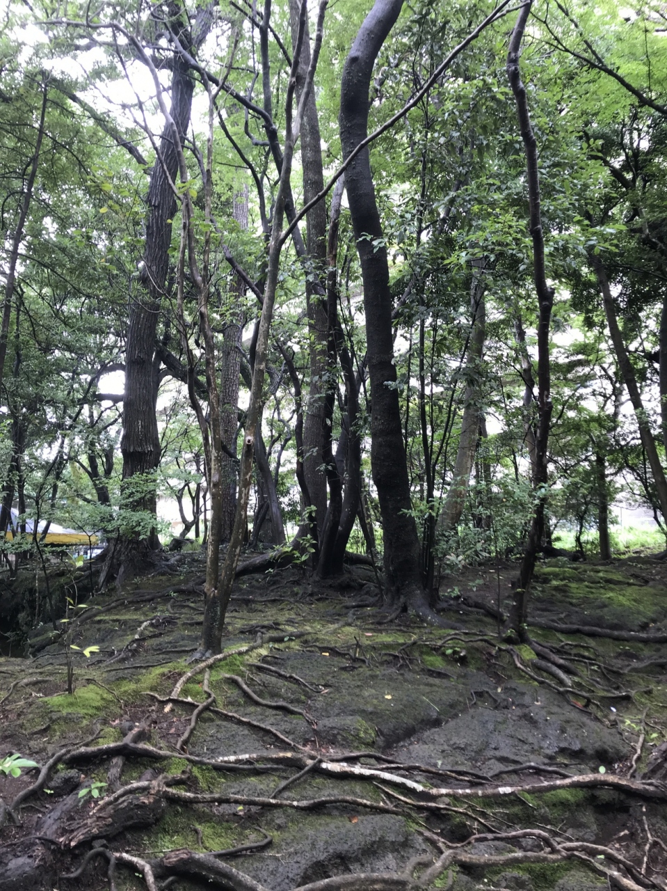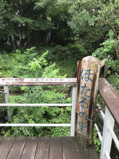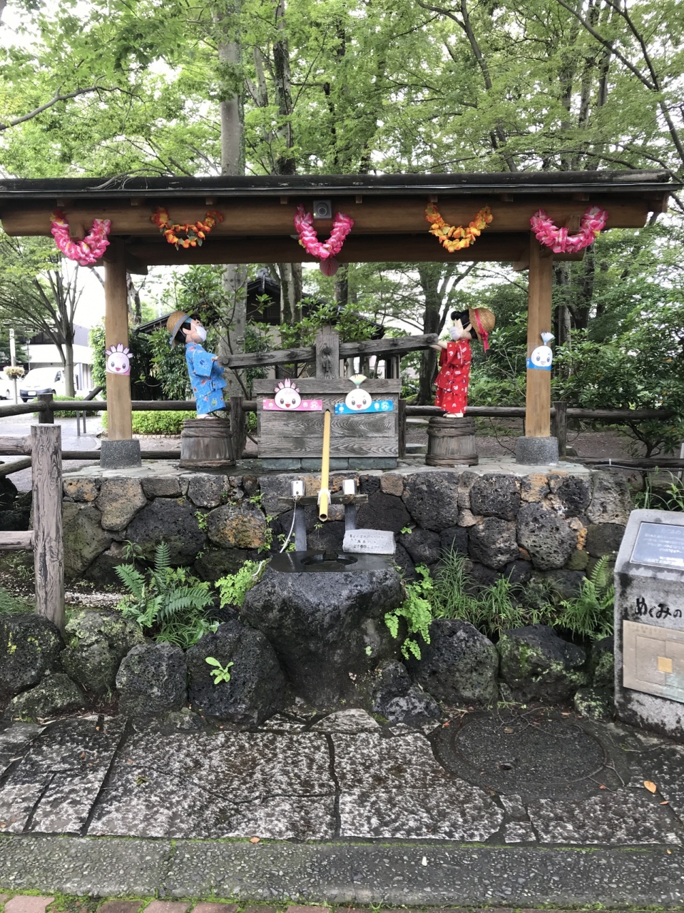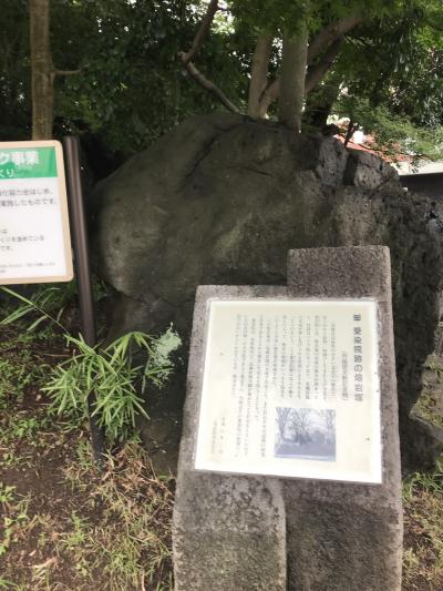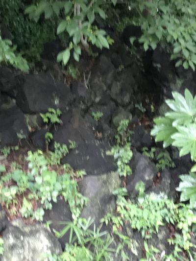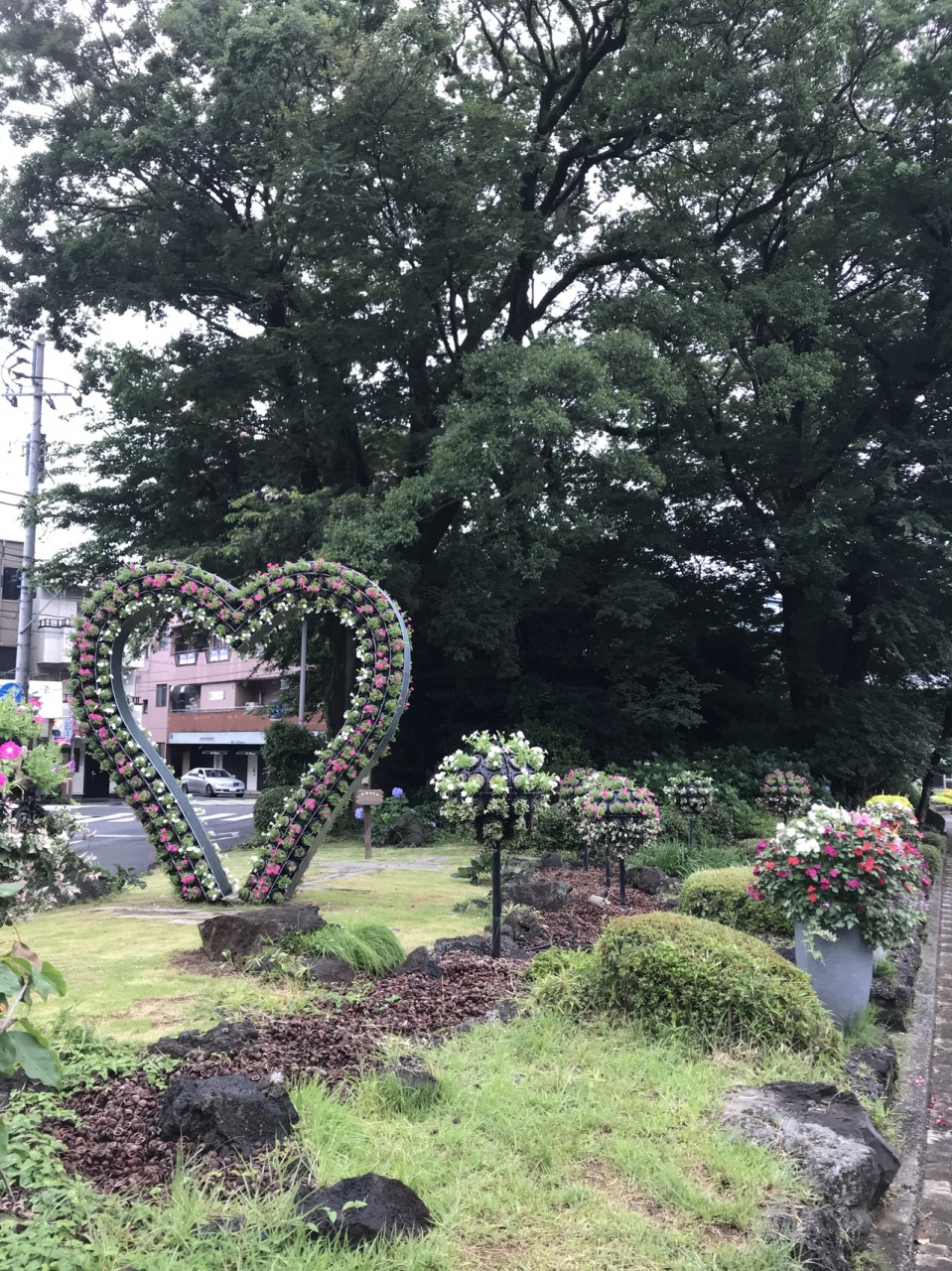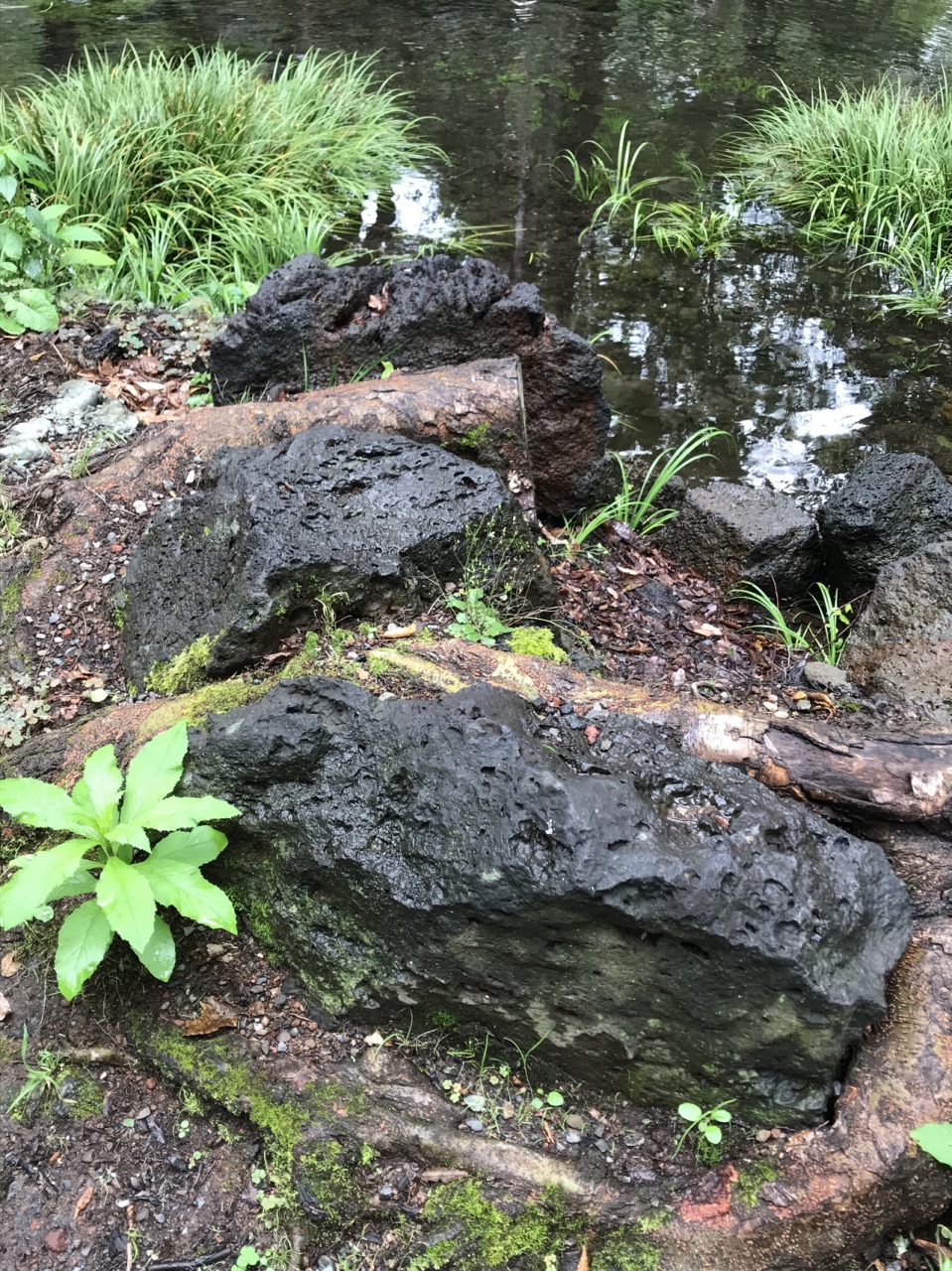 白滝公園から三島駅の方に歩いている時、道路と道路がぶつかって三角になっているようなところにありました。溶岩がこんもり盛り上がってできている溶岩塚です。人工の滝があり、夏の一定の時期に水が流れるそうです。フォトスポットのようなハート型のオブジェがあり、何ここ?と目を引きます。
