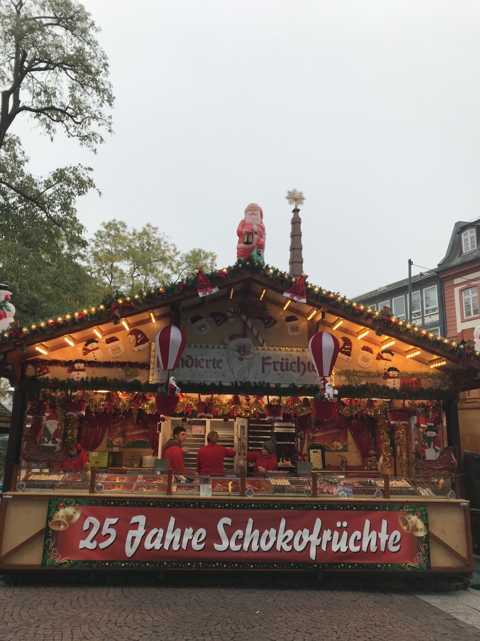 クリスマスの大体1ヶ月くらい前から、クリスマスマーケットが始まります。レーマー広場は、もちろん、街を歩いていると色々なところで開催されています。ストールの飾り付けが可愛くて、それを見ているだけでも楽しめますが、グリューワインを飲んだり、ソーセージを食べたり、買い物したりで、寒さを忘れてしまいます。グリューワインは、その年のかわいいマグカップに入れて出されます。カップが入らなければ返すと返金されます。
