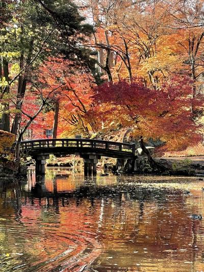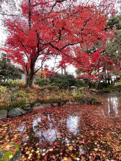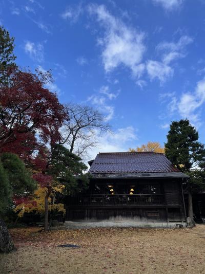 中央公民館、老人福祉センターの施設の建物の隣に旧中村家住宅があります。18世紀から続いた呉服商の住宅を移築してきたそうです。立派な建物です。その向こうに御薬園と呼ばれる庭があります。江戸前期に盛岡城で使われる薬草を育てていたそうです。その後すてきな庭園になったそうで、池の周りに紅葉がたくさん植えられていて、今、真っ赤でとてもきれいでした。