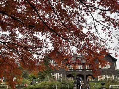 古河庭園の洋館の中の喫茶室です。バラ園のよく見えるテラス席もあります。今、庭園の紅葉と秋バラのコラボでとてもすてきな眺めです。洋館内は撮影禁止なので写真がないのが残念ですが…女子栄養大作のオレンジのパウンドケーキかフルーツのパウンドケーキと飲み物がセットになるケーキセットをいただきました。1300円です。すてきな洋館の中ですてきな景色を眺めながらおしゃべり。リフレッシュできました。