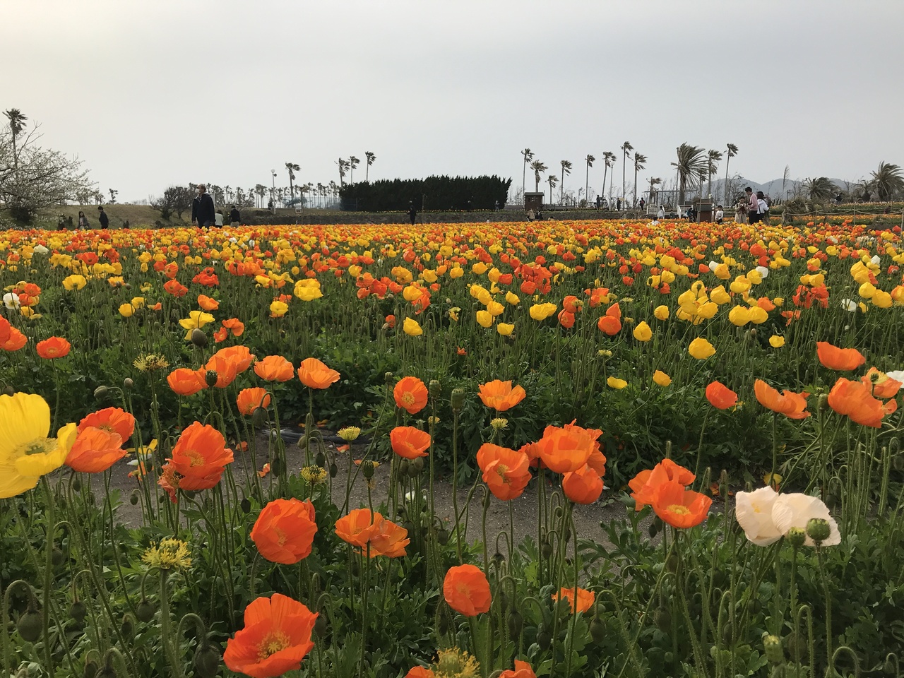 園内に入るとサンドアートの大きなお城があります。サンドアートは、他にもいろいろあります。たくさんの花々が咲いています。特に今の時期は、ポピーがとてもきれいです。花の摘み取りをすることもできます。屋内で、工作や手芸の色々な体験をすることもできます。