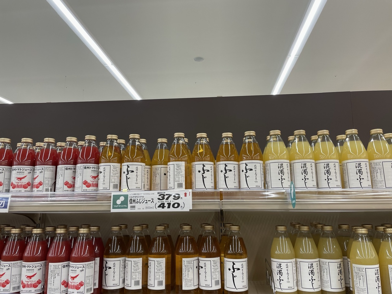 長野県にたくさん店舗のあるスーパーです。軽井沢に来る度に立ち寄りたくなります。こちらの店舗は駐車場は広いし、店員さんは親切だし、品揃えも豊富。私は、オリジナルブランドがお気に入り。いろいろな果物の甘さ控えめのかジャム。ドライフルーツの数々。信州のリンゴジュースや新物のトマトジュースなど。野菜や果物も新鮮で安い。見ていて飽きないし、つい買ってしまいたくなります。