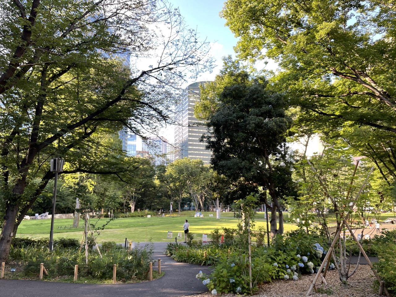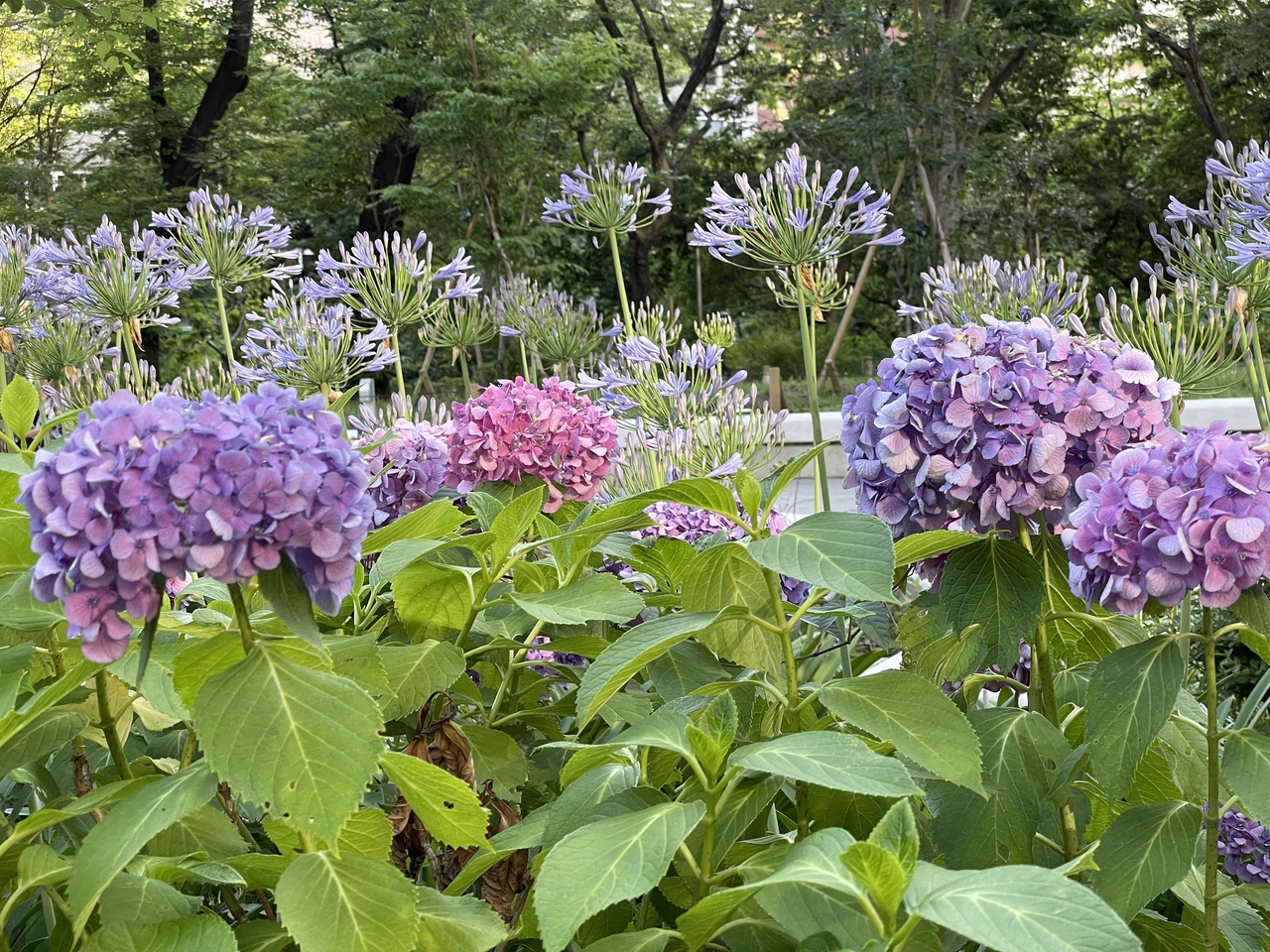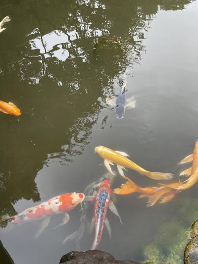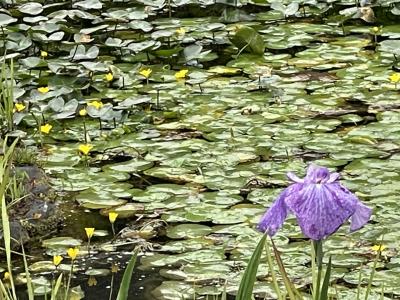 どの季節に来ても、楽しめます。6月中旬に訪ねた時は、菖蒲が咲いていてきれいでした。何度か来たことがあるのですが、訪ねるたびに新発見があります。菖蒲田の隣の二の丸池に黄色い水性植物が咲き、ヒレナガニシキゴイという、ヒレがひらひらしたとてもきれいな鯉が泳いでいました。
