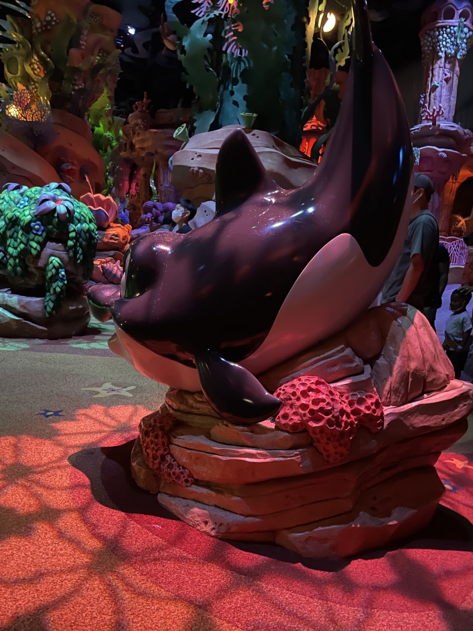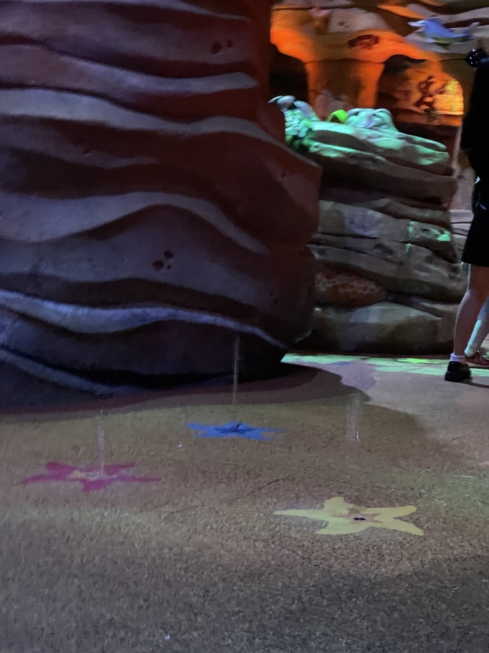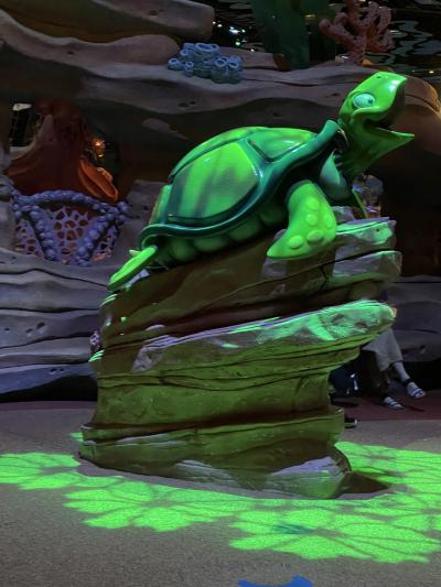 マーメイドラグーンの中にあるので夏でも涼しいです。亀や魚たちからピューピュー水の飛び出すエリアがあるので、服を濡らしたくない時は、近づかない方がいいかもしれません。歩き始めやハイハイの赤ちゃんが自由にできるようなところもあります。動くアトラクションではなく、アスレチックのようなものもあって、子どもが自由に遊べるところなので、並び疲れたら立ち寄ってみるのもいいと思います。