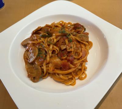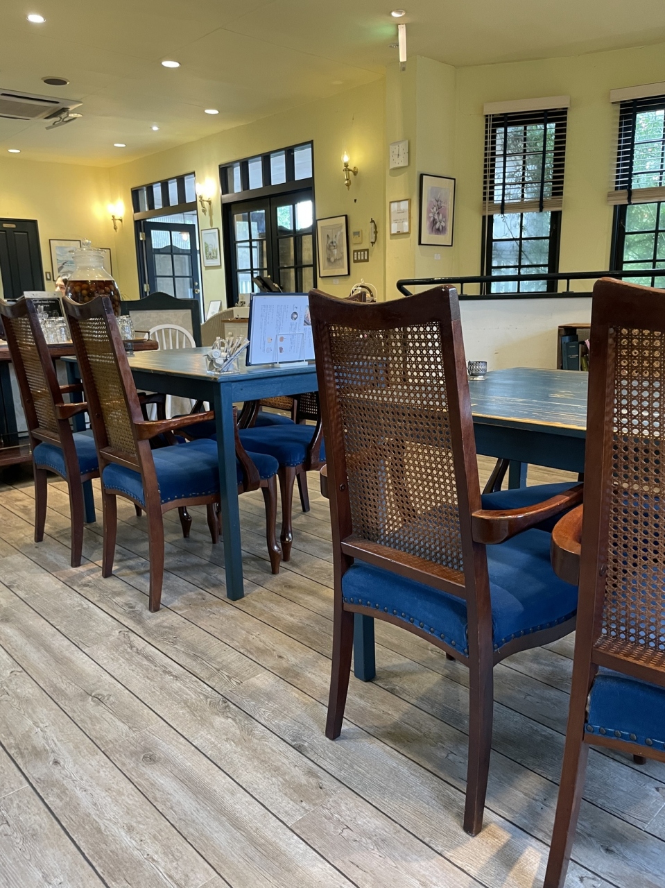 貝殻亭リゾートの中にあります。一階が洋菓子店になっている建物の2階です。だいたいそれぞれ1000円から2000円くらいで、5.6種類のパスタやカレー、タイのガバオ、フランスの郷土料理のアショアなどが食べられます。お庭が広く、いろいろな花々が咲いているので、楽しめます。