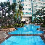 ホテルの右手にはルンピニー公園が見えます。ロビーはあまり広くなく、ツアー客がいるときは混雑してうるさいです。プールも十分なひろさがあり、快適に泳げました。- 旅行時期