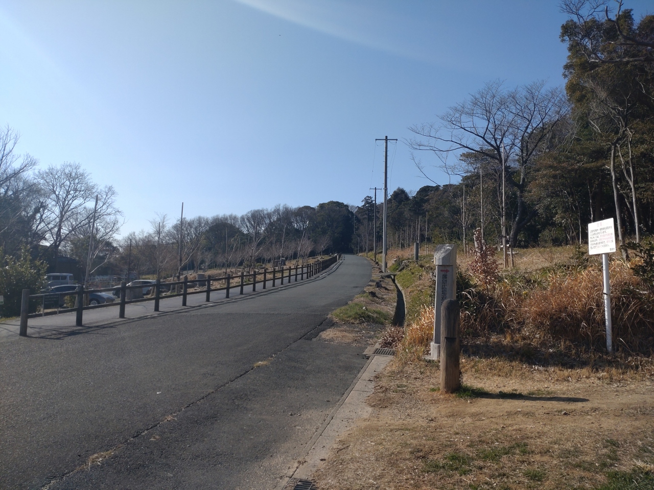 駐車場は、道路を挟んだ反対側に少しだけ。道路を横断するのには要注意です。