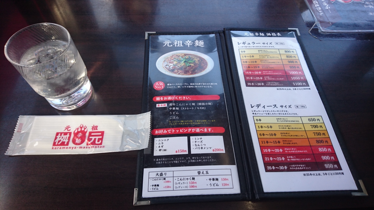 初めてなので、レギュラーで頼みます。辛さは30段階…どうしようかと悩んだ挙句、1/10の3辛にしました。麺は、こんにゃく麺、トッピングは足し引きせず。