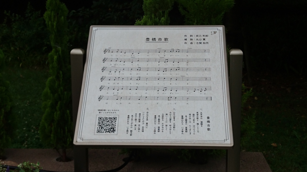 結構な広さがあり、ゆっくり歩くと1時間以上かかります。北側の朝倉川・豊川河畔南側の豊橋公園、その中にはいろいろな記念碑が建っています。