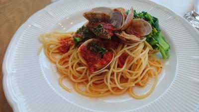 「気軽なpasta lunch」baguette×2、pasta(選べます)今回は菜の花とアサリのtomato sauce、desert、drinkです。