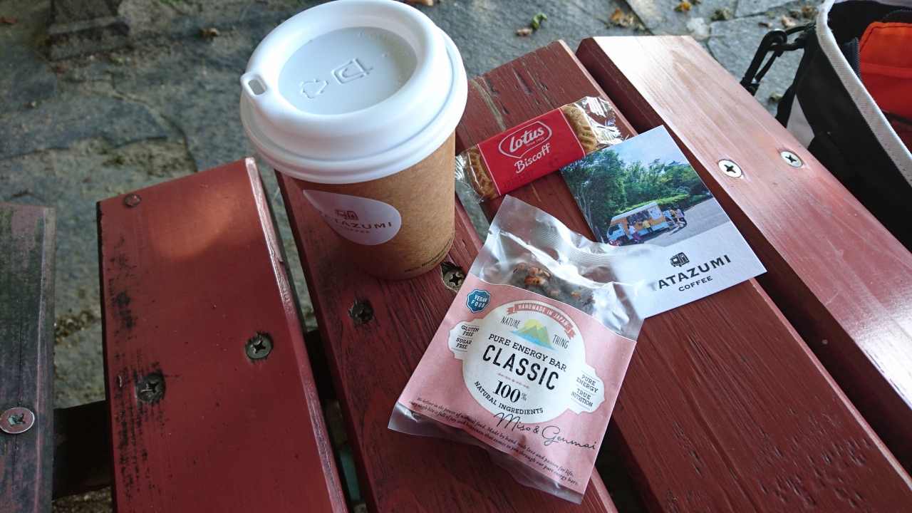 おまけにbiscuit(Lotus Biscoff)が付きます。それと今回は、ちょっと変わったEnergy barを頂きました。味噌が練り込まれていました。口元に運ぶだけで味噌が香ります。