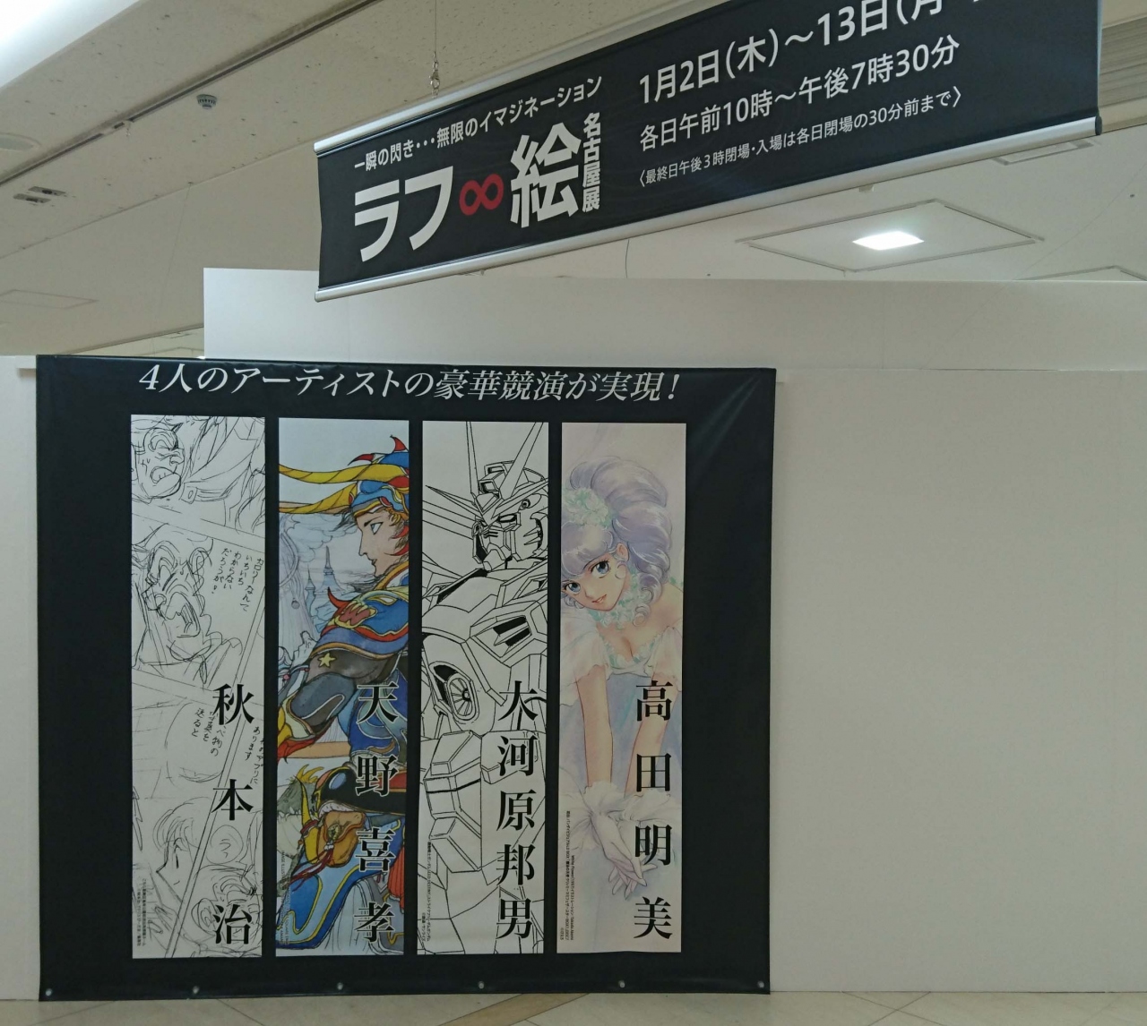 rough∞絵展、4人の巨匠のrough sketchを展示するとともに、お互い漫画や絵を描きあっての展示です。