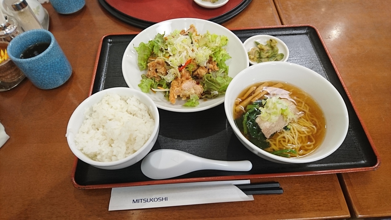 油淋鶏は固いし、下の野菜はsuperのcut野菜、それも傷んでいる。大体lettuceを包丁で切ったら、シャキシャキ感がなくなるんだから手で千切ってほしい。ラーメンもinstantみたい…。