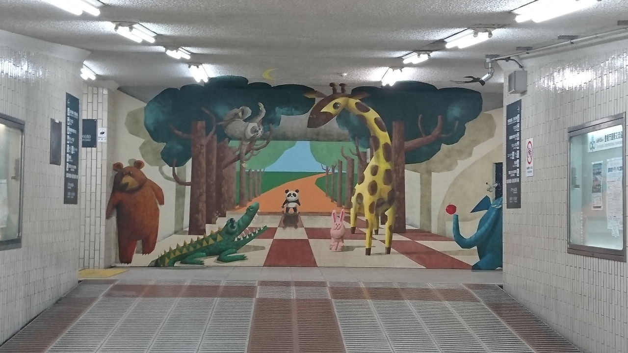 今そこにはかわいい動物のだまし絵が描かれています。ずいぶん前に紹介されていたのですが、なかなか地下道を歩かないので、見ることができませんでした。