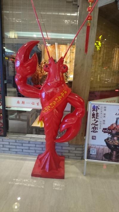 ザリガニ料理と思わせるバルタン星人張りの看板。