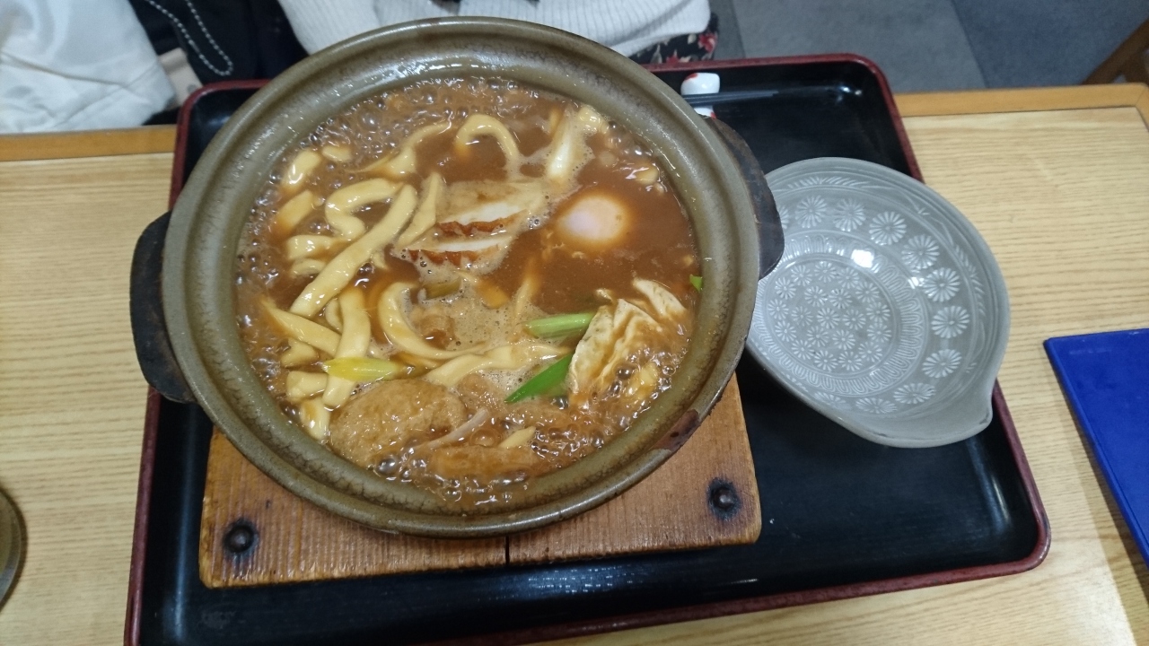 なごやめしって事で、味噌煮込みときしめんです。味噌煮込みは赤味噌からちょっと合わせ味噌寄りですね。