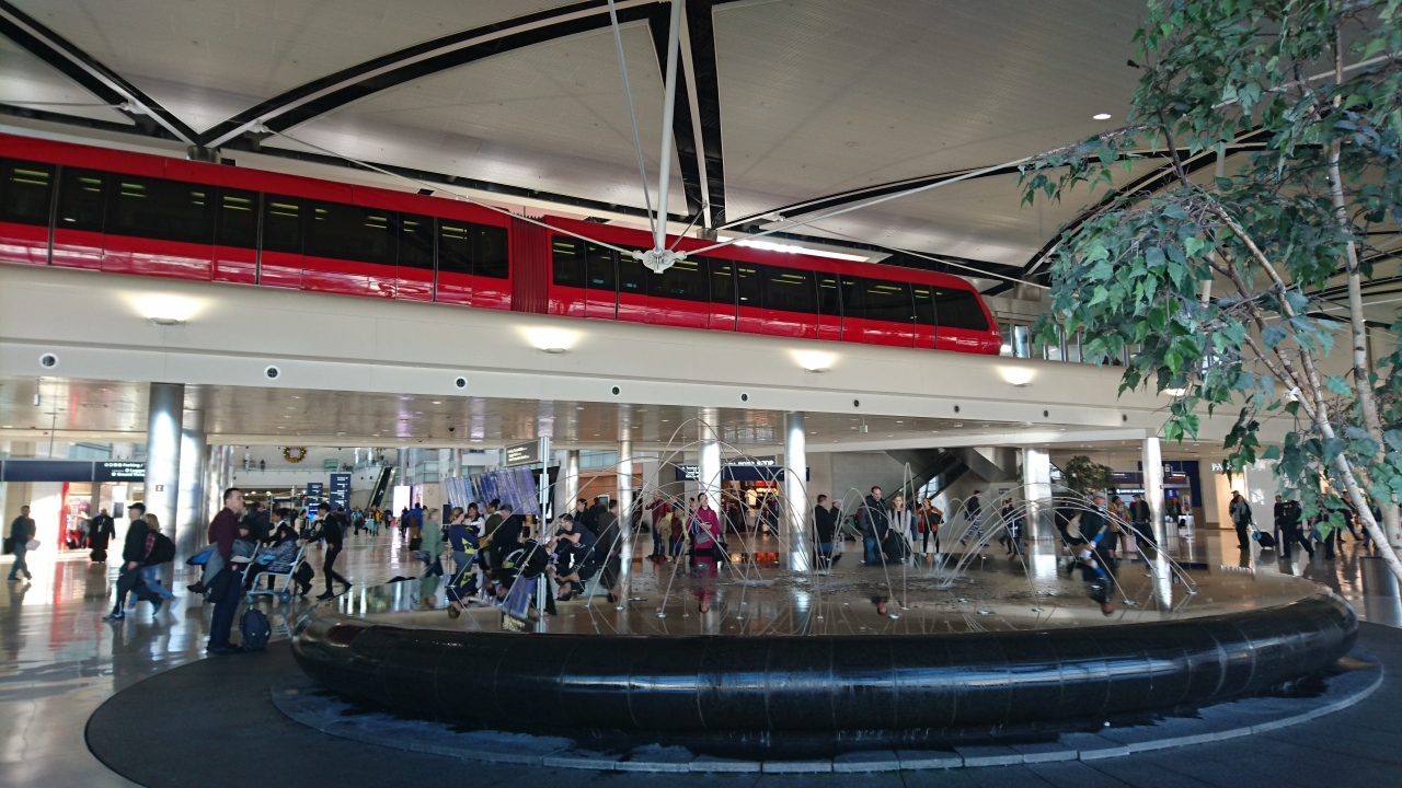 広い空港でmonorailでの移動が必要です。