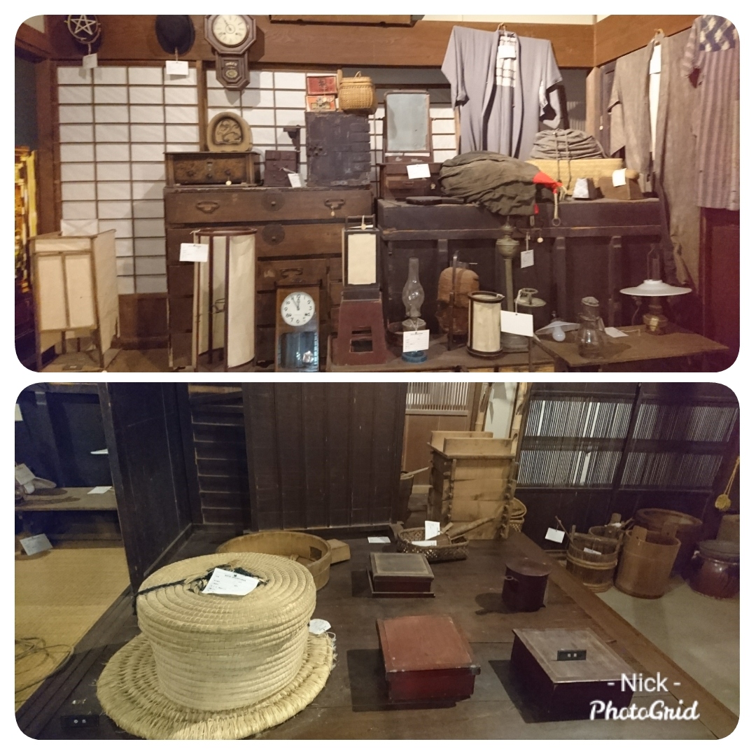 小さな小さな資料館です。常設展示は「郷土資料館」と言う内容にふさわしく、地元の歴史や出土品、昔の生活用具・道具がcompactに展示されています。それで、無料なんです。