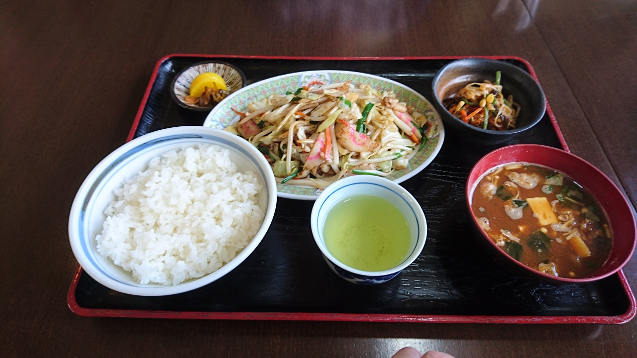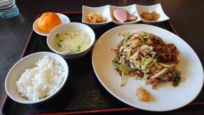 上海焼きそばsetの焼きそばは、化学調味料と油の味。ご飯は固い、付け合わせが市販品ぽい…。
