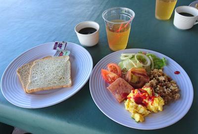 beach sideでの朝食は最高ですね。(雰囲気ね。)過去最高のlocationかも。目の前がbeachはいいですね。