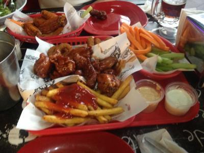 beerを頼むとtowerで出てきます。chicken wingをbasketで頼みましょう。