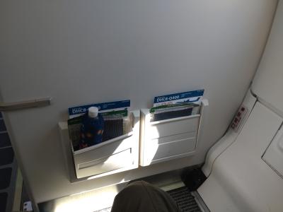 座席は2Cの非常口の通路側。幸い、窓側も空いていたので楽でした。