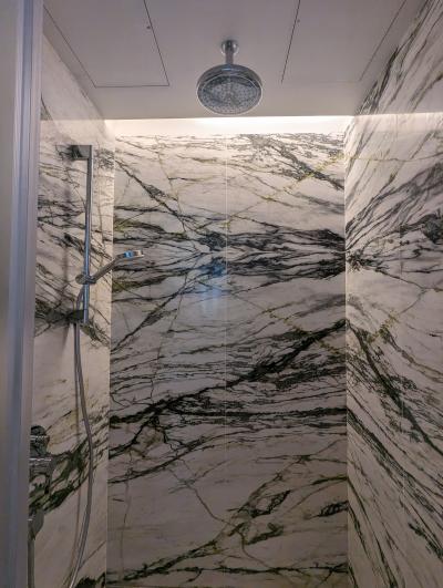 お部屋は決して広くはないが、バスルームだけがやたら広くて寒い。