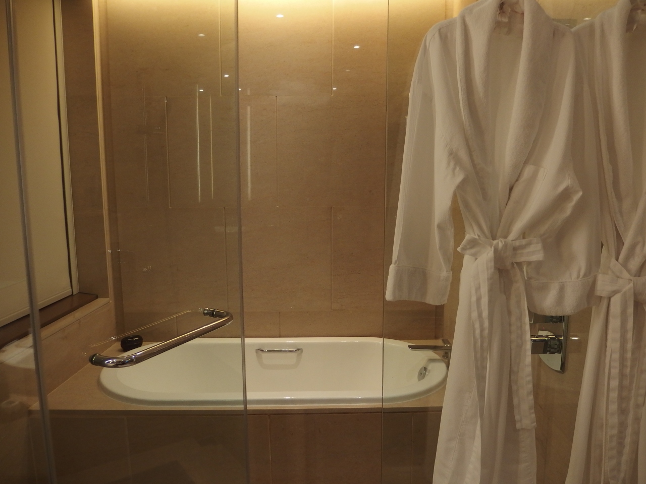 お部屋は言うまでもなく清潔、広さも十分。角部屋だったので窓が2面にあって開放感あり。日系ホテルだけあってアメニティーがかなり充実してます。浴衣あり、歯ブラシあり。それに日本人にはかなりうれしい緑茶葉と急須のセット。疲れて帰ってきて熱い緑茶を飲めるのはかなりうれしい。あとバスルームとお手洗いが別に設けているのがありがたい。そしてバスルームも限りなく日本のつくりに近いです。