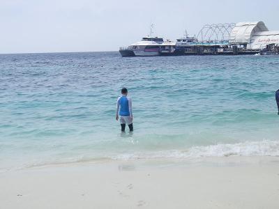 パヤ島:砂浜上陸ここからボードウォーク(橋)をあるいてサメのいる海岸ま...