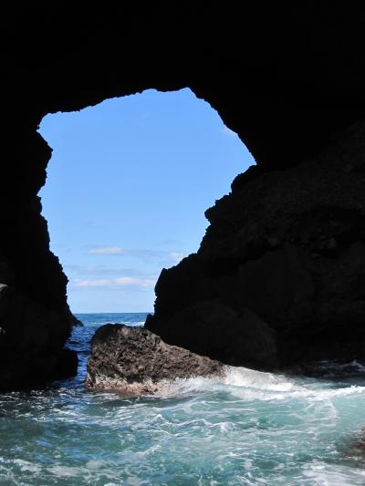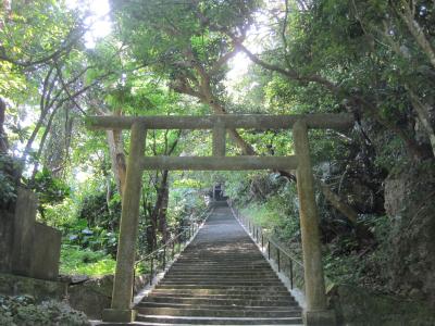 シルミチュー霊場は、浜比嘉島の比嘉集落の南端にあります。石段と大きな鳥居があります。人気もなくて、緑に囲まれた神聖な雰囲気です。108段の階段を登ると、洞窟があって、そこに拝所があります。子宝の御利益があるそうです。