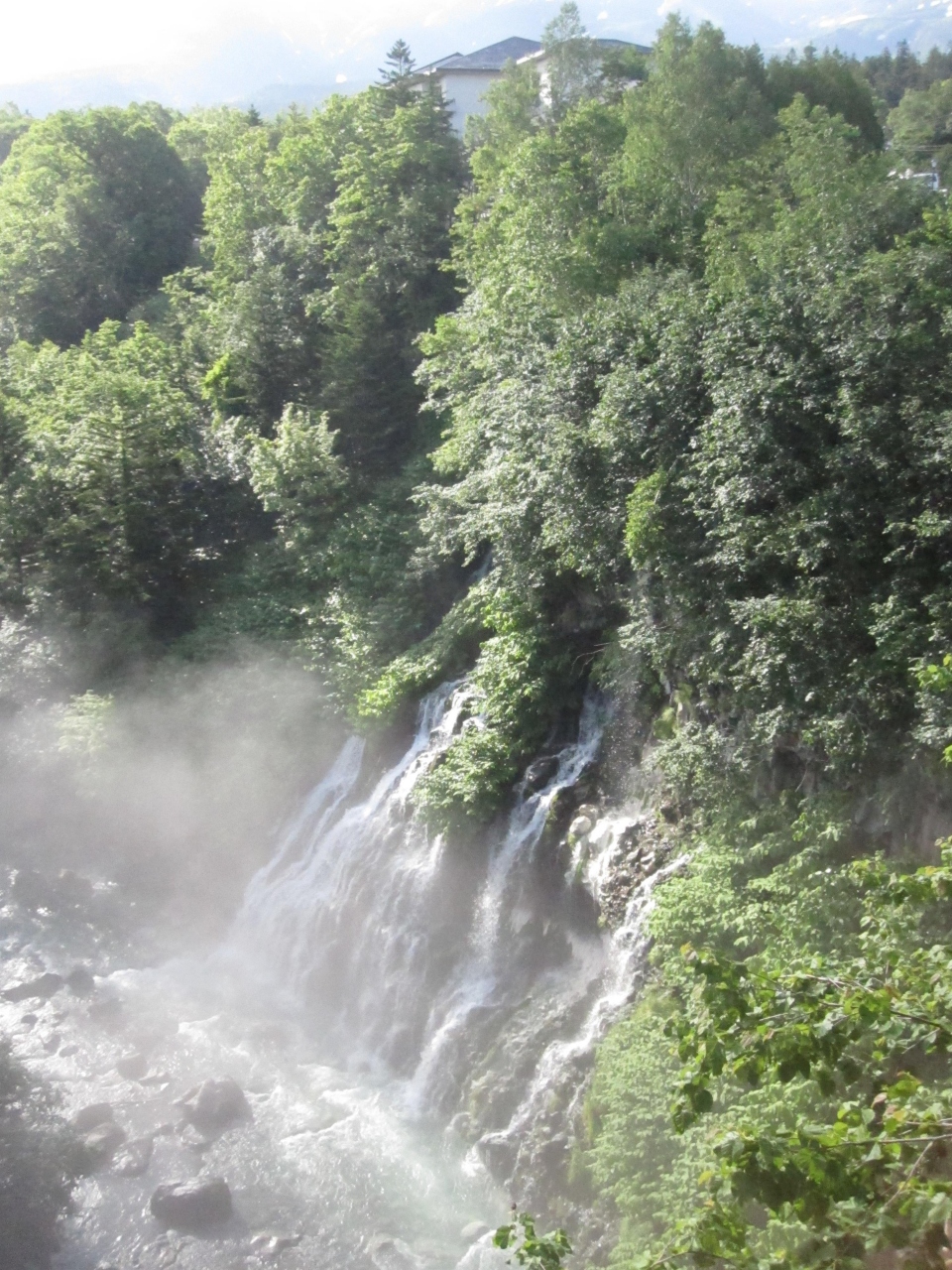 白金温泉から車で5分程の所にあります。駐車場からは歩いて5分位ですが、道が舗装されていないので、歩きやすい靴がいいと思います。人工の池だと聞いてはいましたが、青い池は白樺に囲まれて、神秘的な感じがしました。朝早い時間に訪れることをお薦めします。