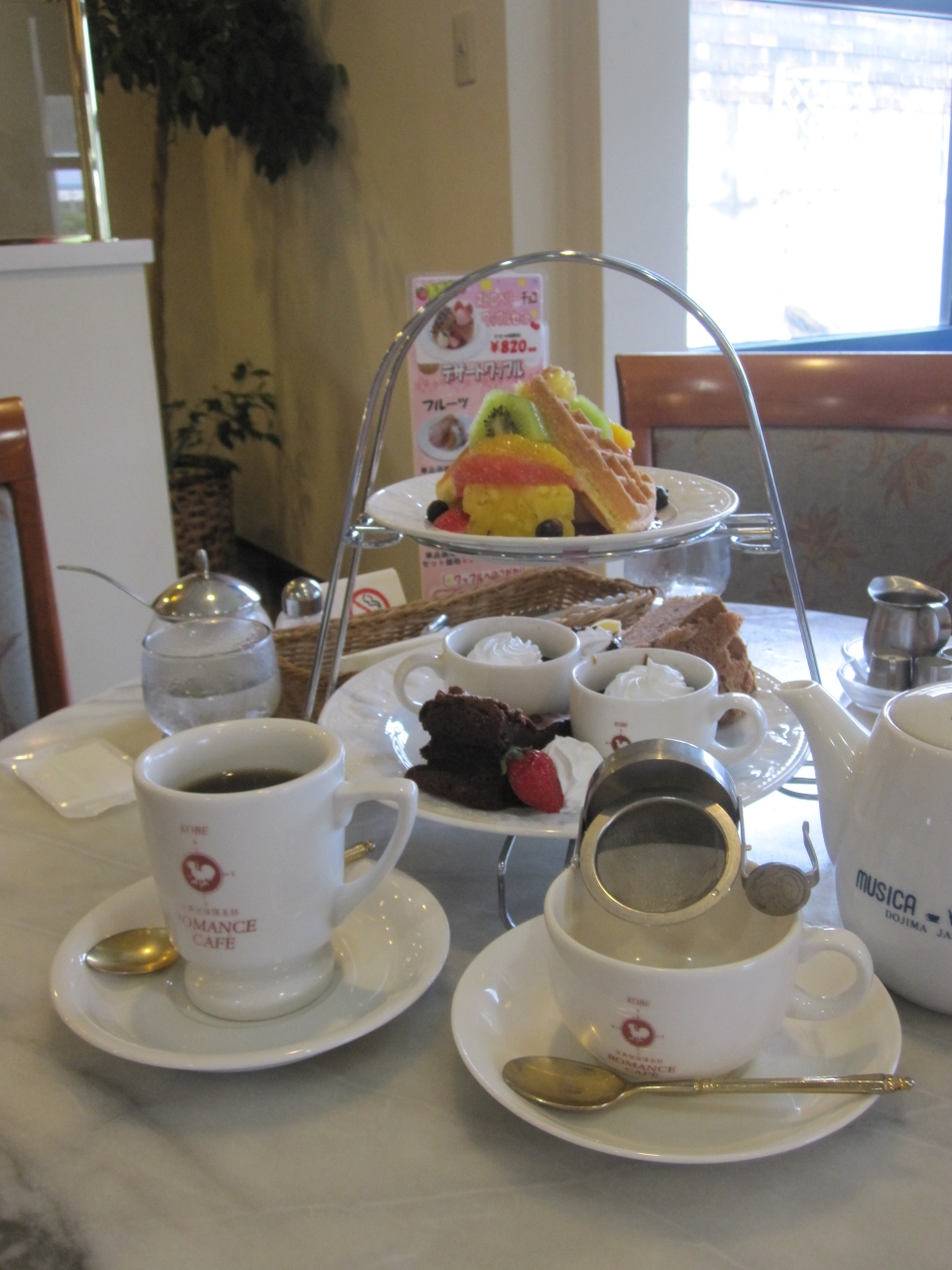 神戸にあるコーヒー屋さんのお店です。アフタヌーンティーセットがあったので注文しました。好きなケーキが選べ、珈琲のおかわりもできます。2段なのでそんなにボリュームはありませんがお値段もそこそこで色々食べられるのでお得だと思います。