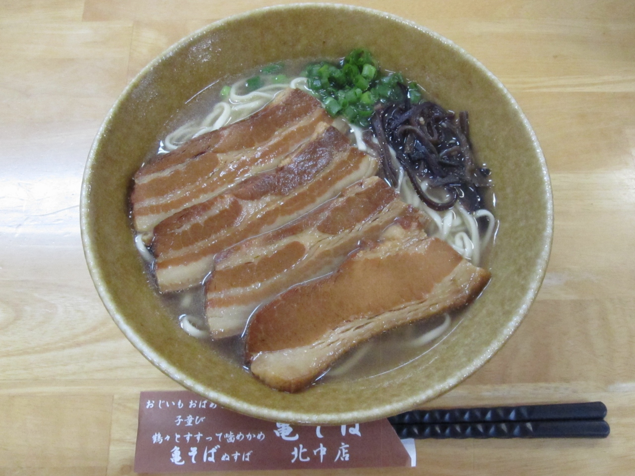 ライカムの近くにある沖縄そば屋さんです。ごく普通の建物ですが、メニューも豊富でサイズも選べます。セットメニューはかなりボリューミーでした。フーチバー(よもぎ)は各テーブルにあり、おそばに入れ放題です。おいしいおそばでした。