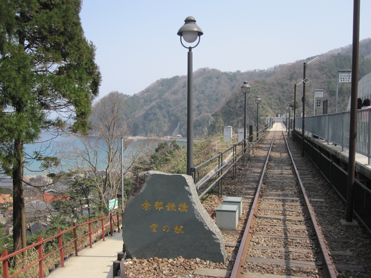 こちらの駅は地上から40メートル上にあります。今でも電車が走っています。この駅に着くまでは坂を登って行かないといけないのが大変です。しかし旧の線路を利用した展望台からの海と山の景色はとても綺麗でした。