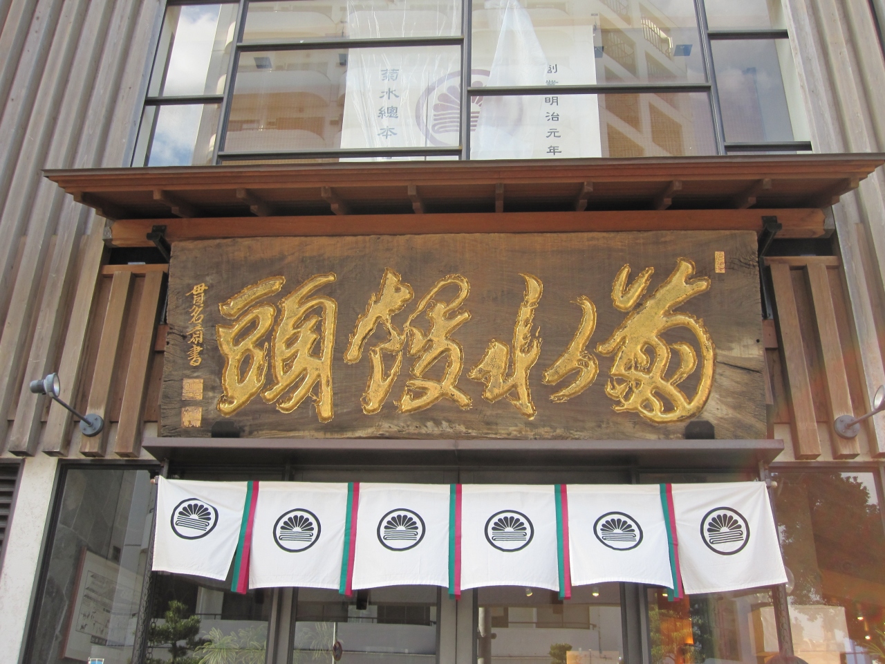 湊川神社の通りを挟んだ向かいにある創業明治元年の老舗の和菓子屋さんです。「菊水饅頭」の看板が風格があります。店内には喫茶スペースもあります。楠正成の家紋をかたどったお饅頭は、あっさりとした餡がおいしいです。