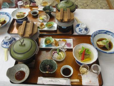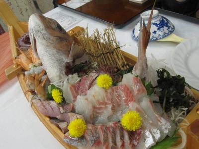 鯛の舟盛り付きで海の幸が色々な調理法で出てきました。お味は普通でした。朝食はビュッフェ形式です。醤油が有名なので醤油が数種類あり、楽しむことができます。夕食についている貝の飾りを受け付けに渡すとストラップを作ってくれました。楽しいサービスだと思いました。- 旅行時期