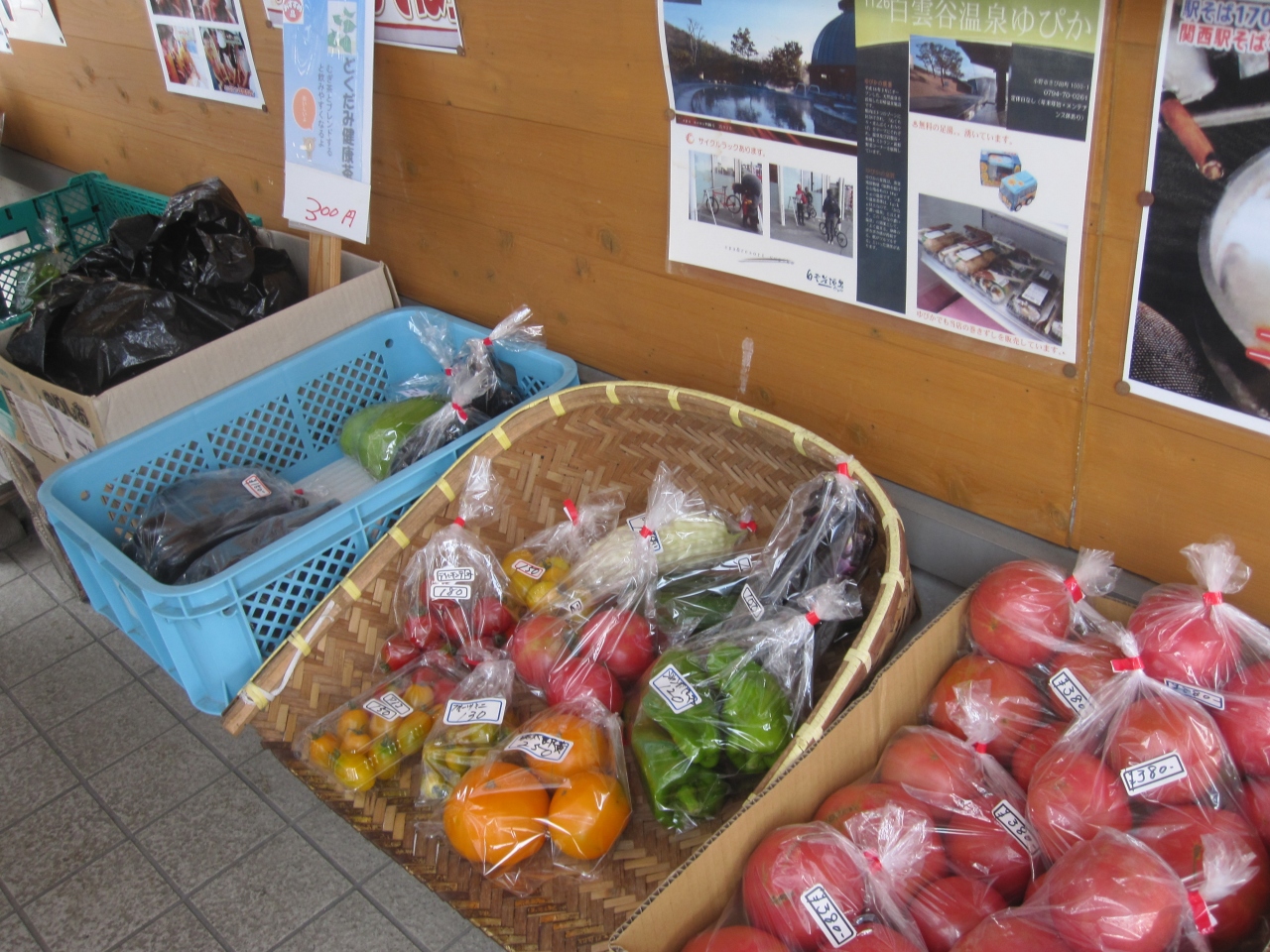 ペンション村を抜けて、大山のふもとにあります。駐車場は広々としています。お店の外に地元のお豆腐屋さんが来ています。ざる豆腐を買いました。しっかりと大豆の味がして美味しかったです。他にハーブソルトのお店もありました。店内で買うより消費税分がお安いそうです。クリスマス島の塩を使っています。お野菜は直売所なので、新鮮でお得に買えました。