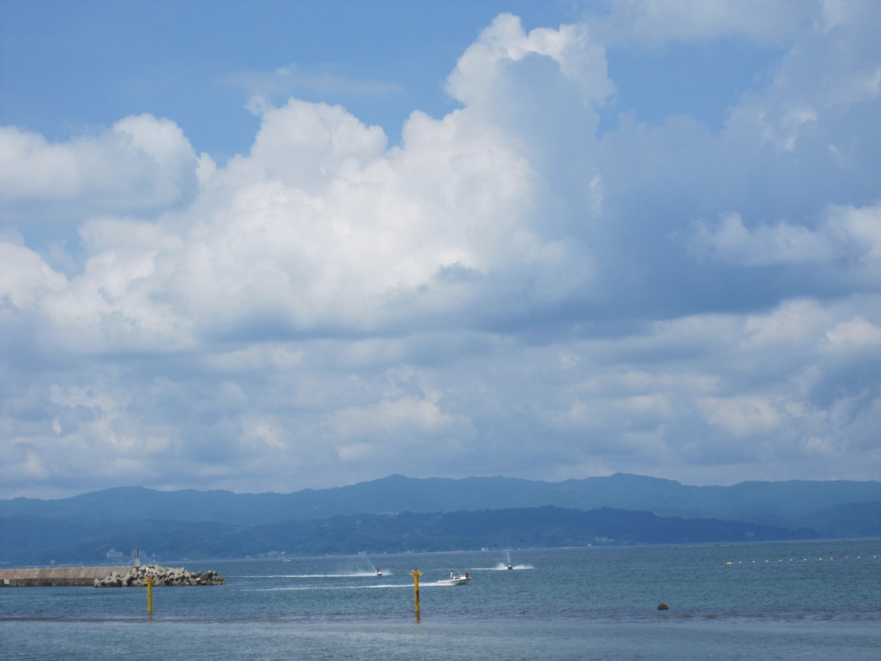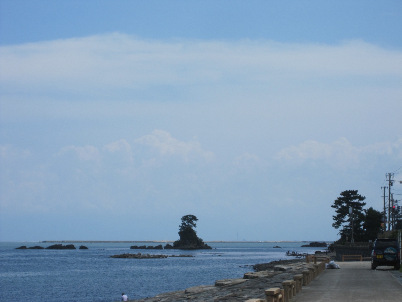 富山湾越しに3000メートル級の立山連峰を望む稀有な海岸です。大伴家持が万葉集にも詠んだことでも有名な景勝地です。写真で見る雪に覆われている風景は冬の期間のみです。夏場でしたが、海より眺める山の景色は綺麗でした。