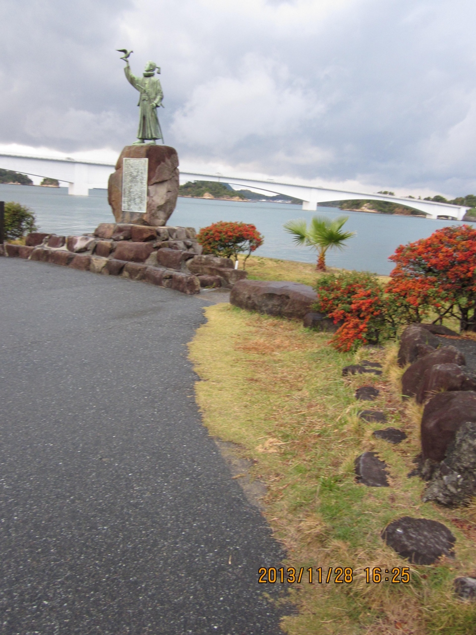 こちらの像を見て、紅顔の美少年で「島原の乱」の指導者というのを納得しました。わずか17歳の短い生涯というのも悲しく、それがりりしさを引き立てているのかなと思いました。海沿いは閑散としており寂しい感じがします。