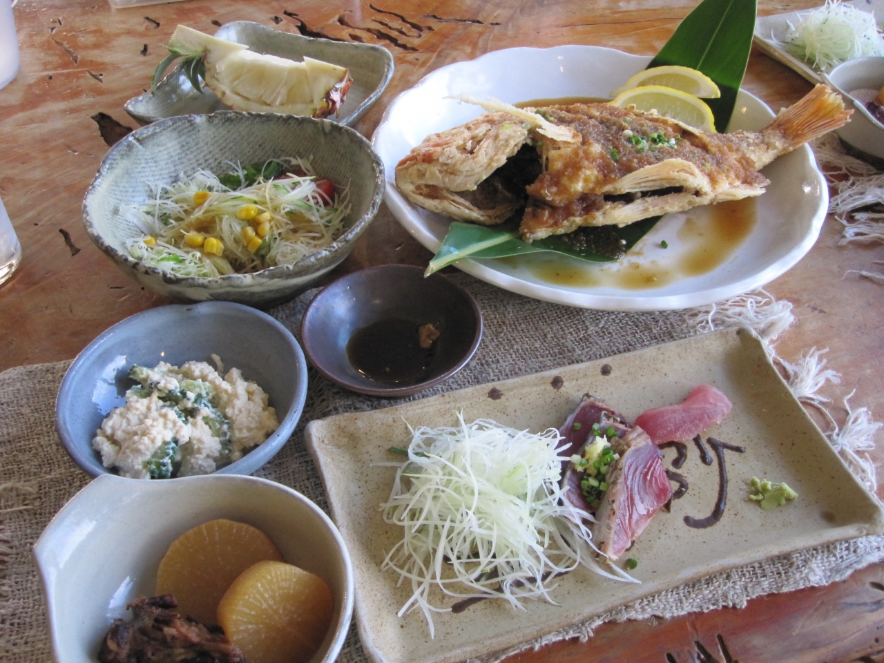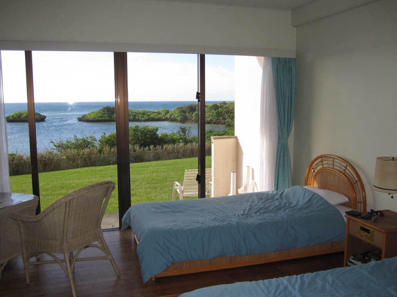 何年か前に宿泊して良かったので利用しました。宿泊+ダイビングパックのプランがあったので、お安く利用でき良かったです。以前来た時と何も変わっていませんでした。お部屋は洋室の1階です。目の前には芝生と海が広がりリーゾト気分です。景色はとてもいいです。全体的に古い感じですが、綺麗にお掃除はされています。お部屋に冷蔵庫もあります。洗濯機と洗濯干場があるので助かります。夕食はボリューミーで島野菜を使ったこだわりのメニューで美味しかったです。この時期はパイナップルの収穫期なのでデザートはおいしいパイナップルが頂けます。