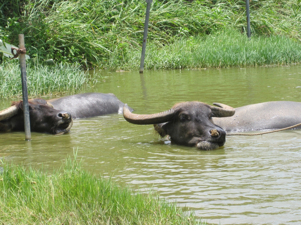 由布島に渡ったら、たくさんの水牛が水の中に浸かっていました。暑さを凌いでいるようです。島内はお土産屋さんと植物園があります。日陰は少ないので、帽子等持っていたほうがいいと思います。- 旅行時期